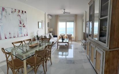 DISPONIBLE PARA EL MES DE JULIO DE 2026 Acogedor apartamento de 4 habitaciones ubicado en la urbanización Vistahermosa. Primera línea de playa con vistas al mar. La vivienda cuenta con un amplio salón con salida directa a la terraza, la cual cuenta con mesa para 6 personas. Cocina independiente equipada con todos los electrodomésticos. La zona de noche se compone de 4 habitaciones amplias y dos baños, uno de ellos en suite en la habitación principal. Todas las habitaciones cuentan con armarios empotrados. El piso se ha amueblado completamente a estrenar. El precio incluye un plaza de parking en el mismo edificio y otra plaza en el complejo residencial en superficie. También cuenta con un amplio trastero. Portero automático, aire acondicionado por bomba frío/calor y puerta de seguridad.