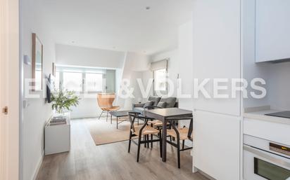 Engel & Völkers presenta este apartamento de lujo amueblado en alquiler recién reformado en una de las mejores zonas del barrio de Hispanoamérica cerca del Eurobuilding y de la Castellana. Se puede alquilar desde 1 mes en adelante. Disponible desde el 26 de enero de 2026 Este apartamento tiene unos 53 m2 muy bien aprovechados con estancias amplias y luminosas y decorado con mucho gusto. El salón comedor está abierto a la cocina pero tiene su espacio de comedor y de estudio. La cocina está totalmente equipada como en las fotos incluso con lavadora en un armario adicional, tiene menaje. El dormitorio principal cuenta con un vestidor y un cuarto de baño en suite con plato de ducha. Tiene aire acondicionado y calefacción distribuido por el techo con un sistema de aerotermia para que el gasto sea mínimo. Y en la renta se incluye el gasto de agua y de internet. No se alquila con plaza de garaje, pero se puede alquilar en la finca según disponibilidad y la finca tiene portero físico en horario comercial. Disponible desde el 22 de Enero 2025. Para visitas consultar fechas. Este fantástico ático en alquiler se encuentra entre las Avenidas de Alberto Alcocer y de Concha Espina dentro del barrio de Chamartín en Hispanoamérica. La vivienda goza de buenas comunicaciones con el resto de la capital gracias a la proximidad a las principales líneas de transporte público, así como de los metros de Colombia, Concha Espina y Santiago Bernabéu. Se ubica próxima a importantes arterias de tráfico rodado, que garantiza una excelente comunicación a través de vehículo propio. Cerca de la Plaza de Duque de Pastrana, se encuentra en una zona con gran oferta de locales comerciales, zonas verdes y colegios. Tiene acceso inmediato a la M-30, M-40, Intercambiador de transportes de Plaza de Castilla y al Aeropuerto, y está muy próxima a los centros financieros de AZCA y CTBA (Cuatro Torres Business Area).