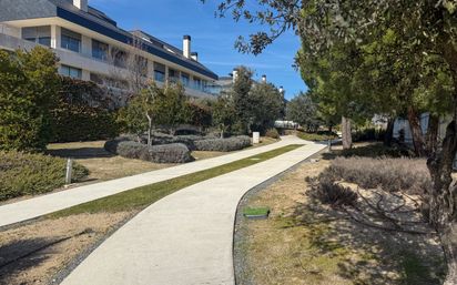 Presentamos este maravilloso piso de lujo con terraza y excelentes calidades en una de las más prestigiosas urbanizaciones de Pozuelo Norte que dispone de zonas comunes donde disfrutar de una fantástica piscina infinity, zona infantil y salón comunitario. Nuestra vivienda cuenta con 143 m2 y goza de una terraza que recorre toda la vivienda y cuenta con dos plazas de garaje y trastero incluidos en el precio. Accedemos a la vivienda y un recibidor con armario gabanero nos da paso al salón sin duda el protagonista de esta vivienda, totalmente diáfano y con grandes ventanales que dan acceso a la terraza y que le aportan a la vivienda una gran luminosidad. En esta misma planta encontramos la cocina totalmente equipada con electrodomésticos de alta gama y salida al tendedero; un aseo de cortesía. En la zona de noche encontramos tres dormitorios y dos baños completos, siendo uno de ellos ensuite para dar servicio al dormitorio principal que además cuenta con vestidor. La casa dispone de calefacción por suelo radiante, aire acondicionado por conductos y persianas motorizadas. La vivienda se encuentra en un entorno tranquilo, enclavada estratégicamente cerca de zonas de ocio, comercio, hospitales y colegios y muy bien comunicada con salida a la M40. Está dotada de armarios empotrados, climatización individual por aire frio-calor, pintura lisa en paredes y suelo radiante. La propiedad se ofrece con tres plazas de garaje y trastero. Sin duda una vivienda para disfrutar de un hogar en inmejorables condiciones y el máximo confort.