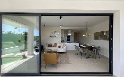 Este impresionante apartamento, situado en la codiciada localidad de Estepona, Málaga, ofrece una experiencia de vida inigualable en la Costa del Sol. Con una ubicación privilegiada en primera línea de golf y en la ladera de la montaña, esta propiedad de 90m² construidos se presenta como una oportunidad única para aquellos que buscan un hogar que combine lujo y comodidad. El apartamento cuenta con tres amplios dormitorios y dos baños completos, uno de ellos en suite, además de dos aseos adicionales para mayor comodidad. La cocina, completamente equipada y de diseño abierto, se integra perfectamente con el comedor y la sala de estar, creando un espacio acogedor y funcional. La propiedad se entrega totalmente amueblada, lista para entrar a vivir, y dispone de aire acondicionado para asegurar el máximo confort durante todo el año. Entre las características destacadas de este apartamento se encuentran su amplia terraza privada de 50m², desde donde se pueden disfrutar de vistas panorámicas al mar, al campo y a la montaña. La comunidad ofrece una serie de servicios excepcionales, incluyendo una piscina climatizada, gimnasio, jardines y garaje comunitarios, además de un sistema de seguridad con entrada vigilada. La propiedad está equipada con tecnología de última generación, como sistema de sonido Dolby Stereo Surround, Internet Wi-Fi y persianas eléctricas. Además, cuenta con espacios adicionales como una sala de estudio, una habitación de invitados y un trastero, lo que la convierte en una opción ideal tanto para familias como para profesionales que buscan un espacio de oficina en casa. Su proximidad a la playa, al golf y a las tiendas, junto con su entorno seguro y cerrado, hacen de este apartamento una joya en el corazón de la Costa del Sol.