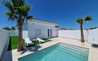 🏡 Magnífico chalet para temporada escolar en zona súper tranquila (Chiclana de la Frontera) Disfruta de una vivienda completamente nueva, luminosa y muy cómoda, perfecta para el curso 2025–2026. 📍 Ubicación: una de las zonas más tranquilas de Chiclana de la Frontera 📅 Disponibilidad: hasta el 30 de junio de 2026 (contrato de temporada escolar) ✔ La vivienda 60 m² muy bien aprovechados Parcela de 230 m² Salón–comedor amplio y acogedor Cocina equipada con electrodomésticos 2 dormitorios muy espaciosos Diseño moderno y 100% amueblada 🌿 Exterior y ocio Jardín con césped artificial (mantenimiento sencillo) Piscina privada de 5 × 3 m para disfrutar todo el año 🔝 Extras incluidos Aire acondicionado en el salón Agua y luz incluidas en el precio Parkin para dos coches