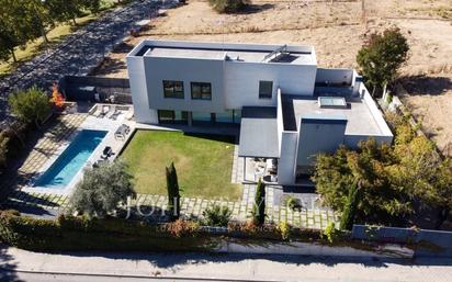 En una de las zonas más privadas y privilegiadas de la capital, encontramos este impresionante chalet de reciente construcción, pensado para vivir con la máxima tranquilidad y comodidad pero a muy poca distancia de la capital. Sobre una parcela de 1000m2, y con diseño moderno, la vivienda nos recibe con un coqueto hall de entrada, que da acceso a una inmensa y perfectamente equipada cocina, con mesa central de comidas tipo isla. A la izquierda del hall, un aogedor salón con chimenea tipo cassette y acceso al jardín y al porche, que se integra en el propio salón. Completa este nivel un dormitorio principal con baño en suite con bañera y plato de ducha, además de amplio vestidor. En la planta primera encontramos una amplia zona de estar, con ventilación cruzada y que podría convertirse fácilmente en dormitorio. Junto a ella, dos dormitorios grandes y luminosos, ambos con baño en suite y armarios empotrados. Una inmensa terraza con vistas al skyline de Madrid completa esta zona de descanso. En la planta semisótano, toda ella con luz natural, encontramos el hueco de caída de la ropa sucia desde las plantas superiores, un pequeño trastero, el cuarto de servicio con baño en suite, un cuarto que hace las veces de lavandería y zona de plancha (podría ser otro dormitorio), el cuarto de máquinas y una espectacular zona de juegos o fiestas, con barra y aseo adyacente. Completa este nivel una sala de música insonorizada, ideal para los más melómanos o apasionados de los instrumentos. Toda la casa cuenta con sistema de calefacción y refrigeración de suelo radiante, alimentado por aerotermia de bajo consumo. El exterior de la casa, con vistas a un precioso campo de golf y perfectamente cuidada, se ve presidida por una preciosa piscina de diseño y de cloración salina, se integra con la casa proporcionando diferentes ambientes para disfrutar del buen tiempo de Madrid. El garaje, no cubierto pero con posibilidad de hacerlo, cuenta con espacio para tres vehículos. La Colonia Camarines, dentro de Aravaca, es una de las zonas más exclusivas de las afueras de la capital para residir. A Apenas 10 minutos en coche del centro de la capital, se trata de una zona plena de naturaleza, con multitud de instalaciones deportivas cerca y con todos los servicios que se puedan necesitar. Además, en la zona se sitúan algunos de los mejores centros educativos de España, todo tipo de servicios, comercios y hoetelería, así como hospitales de referencia y unas comunicaciones envidiables con Madrid, tanto en coche como en transporte público. Cabe destacar la privacidad y seguridad de la zona, tradicional enclave de hogares de los más altos poderes adquisitivos de Madrid.