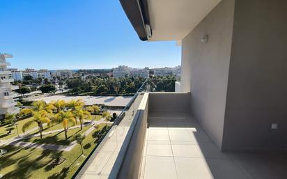 Vivienda en alquiler de larga temporada en el edificio Albatros VI. La vivienda es muy bonita, con una agradable terraza. Tiene 2 dormitorios, 2 baños, uno de ellos en suite. La terraza tiene 11 m2 más una terraza pequeña en el dormitorio principal orientada al sur. Se alquila sin amueblar, excepto la cocina, que incluye vitrocerámica, horno, campana extractora, frigorífico y lavadora. El baño principal tiene mampara y en ambos baños accesorios: toallero, etc. Este apartamento se encuentra en quinta planta con orientación sureste. El edificio es del 2020, por lo que es bastante nuevo y se encuentra en muy buen estado. Tiene piscina familiar y zonas ajardinadas. La entrega de las llaves es prácticamente inmediata.