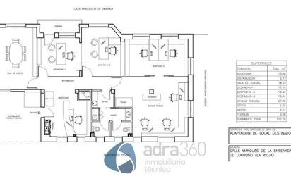 ADRA360 Inmobiliaria Alquila Oficina en Marques de la ensenada. EXCELENTE OCASIÓN para alquilar oficina TOTALMENTE EXTERIOR en el centro de Logroño La oficina 120 mº en la calle Marqués de la Ensenada, está totalmente preparada y amueblada. Consta de 3 despachos, una sala de reuniones, un recibidor, 2 baños y una zona de trabajo. Cuenta con un APARCAMIENTO PRIVADO Alquiler con OPCIÓN A COMPRA ¿QUE ES ADRA360 INMOBILIARIA TÉCNICA? Adra360 hace mucho más que la intermediación en la venta o alquiler de inmuebles. Debido a que disponemos de departamentos propios de ingeniería, arquitectura y decoración, te acompañamos de principio a fin, asesorándote en todas las normativas urbanísticas o necesidades tanto legales como técnicas para la adquisición de su inmueble. Cualquier posibilidad que se le venga a la cabeza para que este inmueble sea su oficina de futuro, no dude en consultárnoslo, nosotros le ayudaremos encantados. La experiencia de 20 años proyectando los mejores inmuebles de Logroño está a su total disposición. Les atendemos personalmente en nuestra Oficina Inmobiliaria en la esquina de C/ Sagasta con Hermanos Moroy (Al lado del Mercado de Abastos). Tf. 941093744. Las visitas con nuestros Técnicos e Ingenieros se hacen de manera gratuita, infórmese para agendarlas. [IW]