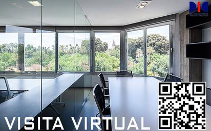 Magnífica oficina representativa AMUEBLADA y en excelente estado. Impresionantes vistas a Avenida Menéndez Pelayo, Jardines de Murillo y la Giralda. Reformada y totalmente equipada y amueblada. Consta de: - Espacio de RECEPCIÓN y espera. - GRAN ESPACIO GENERAL DE TRABAJO, amueblado para NUEVE puestos de trabajo, con toda la fachada acristalada, con vistas a la Avenida y Jardines. - SALA DE JUNTAS, con mesa de reuniones. Fachada a Avenida. - DESPAHO 1. Con espacio de ARCHIVO oculto. - DESPAHO 2. Con espacio de ARCHIVO oculto. Fachada a calle trasera. - BAÑO/OFFICE, con dos aseos independientes. Fachada a calle trasera. Diseñado con estilo contemporáneo, definiendo un espacio diáfano compartimentado con paneles y puertas de vidrio templado. Totalmente AMUEBLADO. CLIMATIZADO frío/calor. TOMAS TÉCNICAS en pavimento en cada estancia y para cada puesto de trabajo en el espacio general con tomas de corriente y red de datos. Edificio CON ASCENSOR. Una oficina por planta.