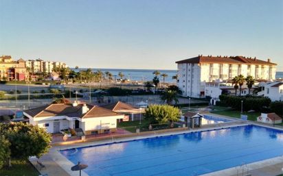 Se alquila piso en la urbanización Laguna Beach en Torrox Costa, salón comedor con balcón vistas a la piscina y al mar, cocina equipada, 2 habitaciones, baño completo y aseo, ventiladores de techo en las habitaciones y aire acondicionado en el salón. La urbanización Laguna Beach es privada tiene 5 piscinas una de ellas olímpica, pistas de tenis, pádel, petanca y parque infantil, hay supermercados y varias cafeterías además tiene una superficie muy extensa de jardines, con salida directa al paseo y a la playa. Cerca de Nerja, Frigiliana, Torre del Mar y a solo 30 minutos de Málaga.