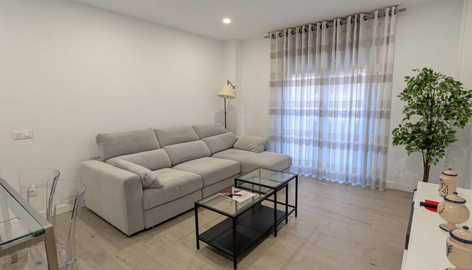 El salón está también totalmente amueblado, listo para entrar a vivir, y dispone de un pequeño balcón que aporta luz natural y un agradable desahogo exterior.