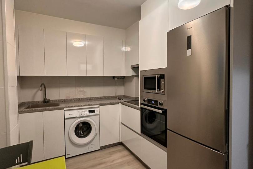 Piso de tres dormitorios el principal con una gran terraza, cocina independiente equipada, salón comedor y dos baños. Plaza de garaje y trastero.