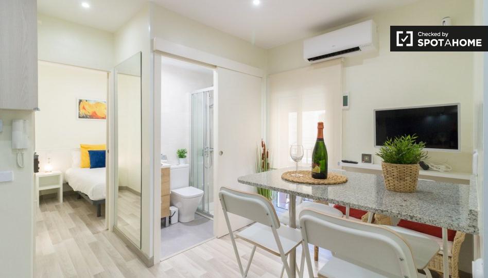 Este apartamento de 2 dormitorios en La Barceloneta ofrece un cómodo espacio equipado con aire acondicionado individual, calefacción eléctrica y lavadora privada. Está completamente amueblado y cuenta con balcón, creando un ambiente acogedor. Spotahome ha revisado personalmente esta propiedad para su comodidad.