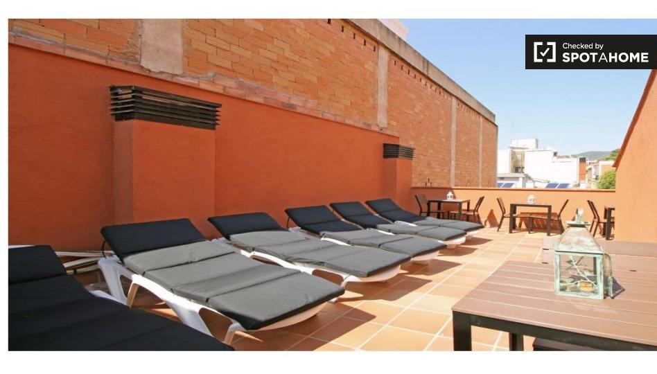 El apartamento está situado en Gràcia, al norte del centro de la ciudad. Este encantador barrio se encuentra al pie de las montañas de Collserola y es un excelente lugar para asentarse si le gusta el aire fresco de la montaña. Hay muchas tiendas, restaurantes y bares cerca, así como el Park Güelll. Hay un gimnasio a 200 metros de la propiedad y un aparcamiento gratuito para bicicletas, motocicletas y coches.