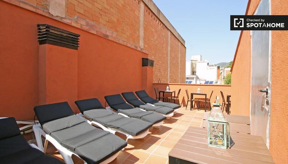 El apartamento se encuentra a pocos pasos de los Jardines del Turó del Putxet, que ofrecen vistas panorámicas de la ciudad, y del Park Güell, un peculiar museo al aire libre de Gaudí. También encontrarás transporte público cercano para llevarte por la ciudad. Hay un gimnasio a 200 metros de la propiedad y un estacionamiento gratuito para bicicletas, motocicletas y automóviles.