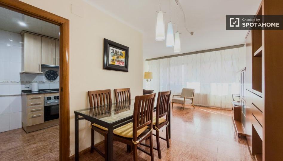 Ubicado en el barrio de la Teixonera de Barcelona, este apartamento amueblado de 3 dormitorios ofrece un espacio ideal con todas las comodidades. Equipado con aire acondicionado individual, calefacción y agua a gas natural, cocina equipada con horno y acceso a una lavadora común, este apartamento garantiza una estancia confortable. Tenga en cuenta que no se permite fumar ni se admiten mascotas.