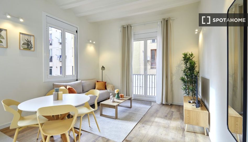 Explora este apartamento de 2 habitaciones en alquiler en El Raval, Barcelona, verificado por Spotahome. Este apartamento interior está completamente amueblado e incluye cocina equipada, balcón y aire acondicionado individual. Ideal para profesionales, parejas y estudiantes. Se admiten mascotas, lo que lo convierte en la opción perfecta para quienes las tengan. Los servicios compartidos incluyen lavadora, secadora y lavavajillas, lo que garantiza la comodidad durante tu estancia.