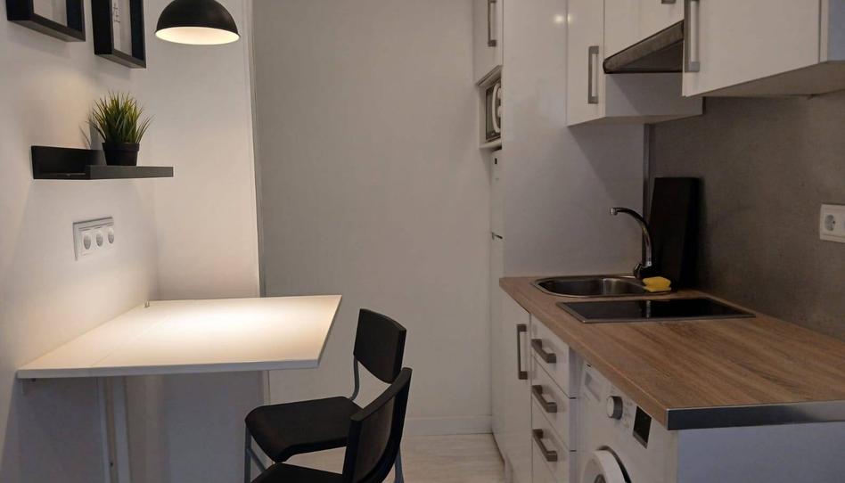 Cocina equipada con electrodomésticos integrada en el salón.