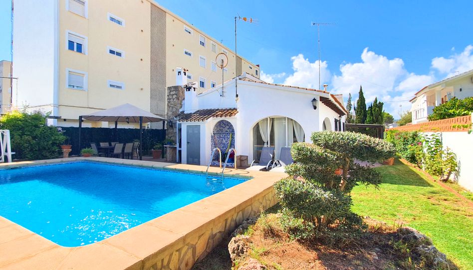 ALQUILER DE TEMPORADA Y TURISTICO. Chalet independiente con una superficie de 85 mts y 650 mts de parcela a 80 mts de la playa con salida privada y a 700 mts de Denia, dispone de 3 dormitorios dobles, armarios empotrados, 2 baños con plato de ducha, cocina tipo americana, salón comedor, porche cubierto, chimenea, aire acondicionado solo en salón comedor, frigorífico, lavadora, menaje, microondas, plancha, televisión, suelo de gres, ventanas tipo climalit. El exterior cuenta con jardín privado, barbacoa, mesa, asientos, pérgola, piscina privada y aparcamiento para tres vehículos. WIFI GRATUITO.