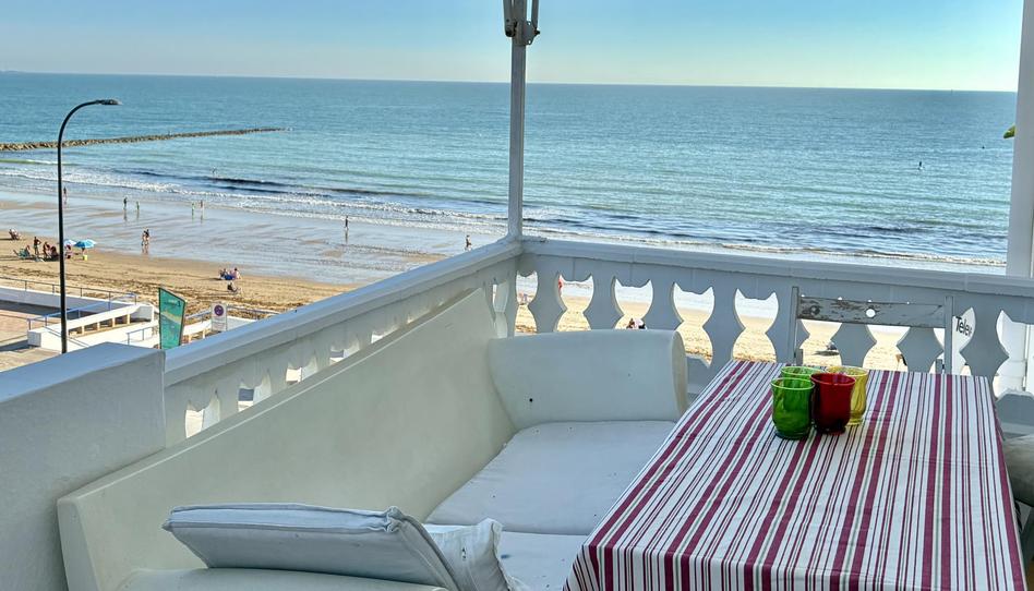 A pie de playa, vistas a Cádiz y al Manatial z, amplia terraza. 1 dormitorio con cama de 140 y sofá cama doble en el salón. 1 baño. Zona común con ducha. Aparcamiento privado en superficie sin plaza asignada.
