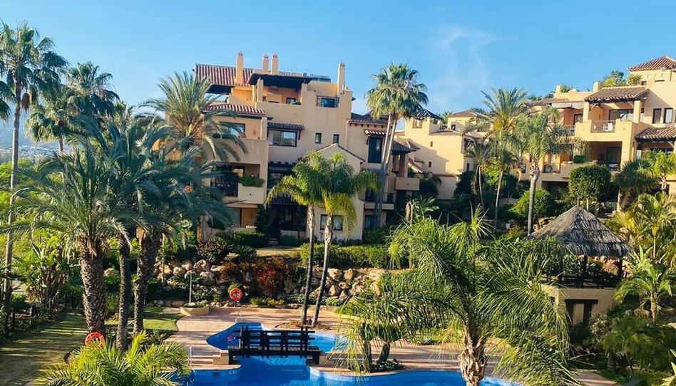 Atico Duplex en alquiler en El Campanario, Estepona con 3 dormitorios, 3 baños y con orientación sur, con piscina comunitaria, garaje privado (1 plazas) y jardín comunitario. Respecto a las dimensiones, la propiedad presenta 240 m² construidos, 160 m² en interior y 80 m² de terraza. Tiene las siguientes características servicios cercanos, aire acondicionado, completamente amueblado, cocina totalmente equipada, entrada de seguridad, cristal doble, barbacoa, servicio de seguridad 24h, terraza privada, cocina equipada, salón, vistas al mar, vistas a la montaña, lavadero, internet - wi-fi, terraza cubierta, 24 horas de servicio, comunidad cerrada, ascensor, vistas panorámicas, cerca de playa / mar, cerca del golf, terraza descubierta, excelente estado, tiendas cerca, cerca de la ciudad, colegios cerca, puerta blindada, aerotermia y internet - fibra óptica.