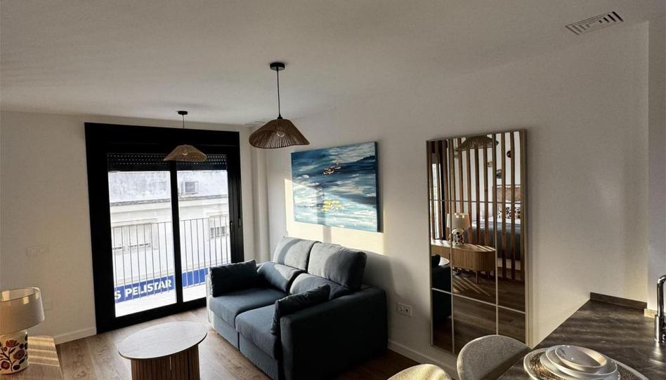 Dispone de doble terraza, cocina totalmente equipada (horno, microondas, frigorífico, lavavajillas y lavadora), dormitorio con cama de 1,50 m y armario empotrado, salón amueblado y baño con plato de ducha. Distribución tipo loft con celosía decorativa y ventanales amplios.