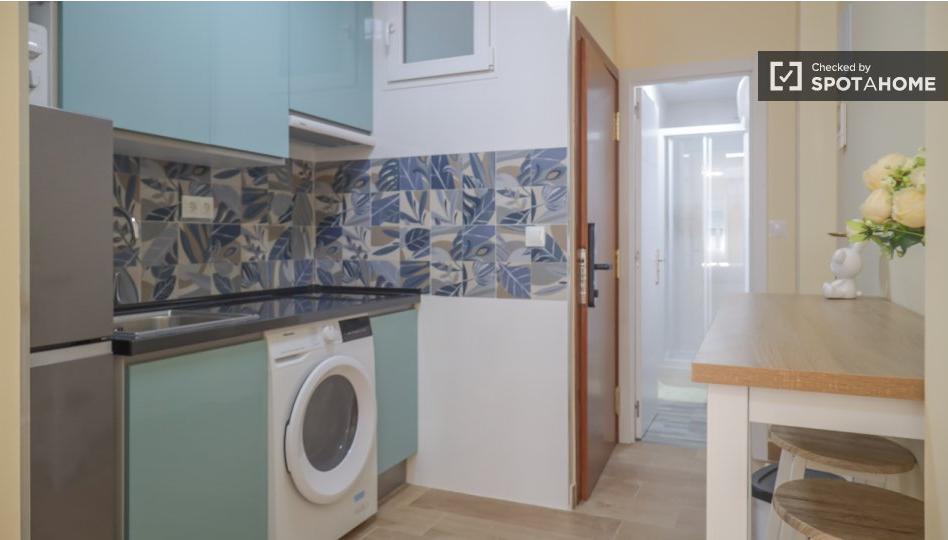 Ubicado en Bellas Vistas, este estudio es perfecto para quienes buscan una vida cómoda. Cuenta con cocina equipada, aire acondicionado individual (calefacción y refrigeración) y lavandería privada con lavadora y secadora. Los gastos de agua, gas, electricidad y wifi están incluidos, y se ofrece servicio de limpieza periódico. Se permite fumar, pero no se admiten mascotas ni parejas. La propiedad ha sido revisada por Spotahome, lo que garantiza su fiabilidad y calidad.