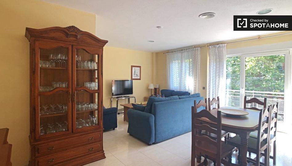 Este elegante apartamento de 4 dormitorios en el Paseo de las Delicias, en Delicias, está completamente amueblado y tiene un hermoso balcón. La propiedad tiene mucho encanto, con una amplia sala de estar y muebles de moda. Hay 2 baños con azulejos bonitos y 1 cocina moderna totalmente equipada. Calefacción y aire acondicionado están instalados en todo.