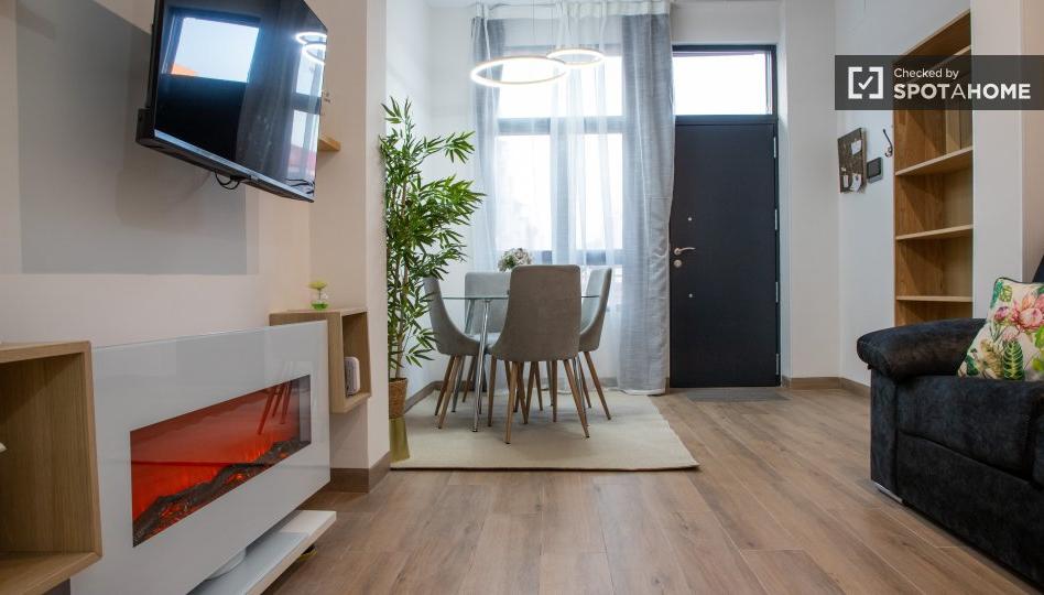 ¿Buscas un espacio acogedor en Madrid? Este apartamento de 1 dormitorio en Lucero está completamente amueblado e incluye lavadora, lavavajillas y aire acondicionado central para mayor comodidad. Disfruta de comodidades como TV y cocina equipada, además de la comodidad de tener todos los gastos incluidos. Ya seas profesional, estudiante o familia, este alojamiento es ideal para todos, sin restricciones de inquilinos. Revisado y verificado para tu tranquilidad, instálate en tu nuevo hogar con facilidad.