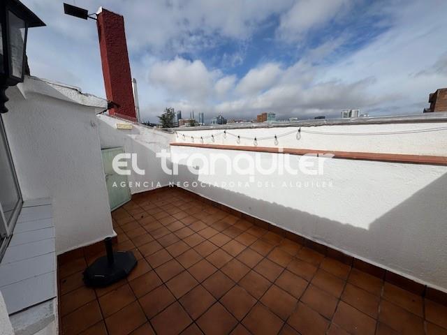 Se alquila estupenda vivienda parcialmente reformada, tipo ático de 52 m2 y 2 terrazas (12 m2 y 4 m2 aproximadamente) exterior y muy luminosa en finca con ascensor y portero físico.