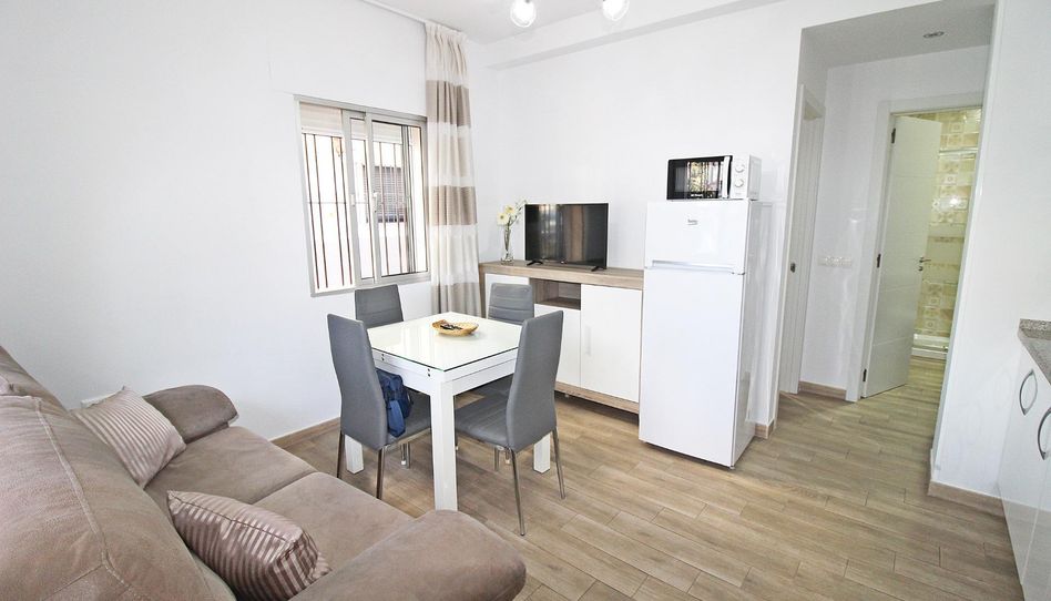 Salón-cocina amueblada y equipada, una habitación doble con cama de 135m2 y somier con cajoneras, y baño completo con plato de ducha. Un especia cómodo y optimizado.