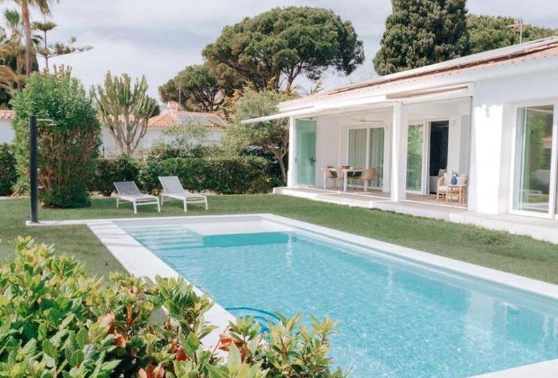Recientemente reformada, moderna y a estrenar, a solo 100 metros de la playa en Marbesa, Marbella. Ofrece 3 dormitorios y 3 baños, piscina privada, garaje con enchufe para coche eléctrico y un amplio jardín. La casa cuenta con alarma y la urbanización cuenta con seguridad 24 horas.