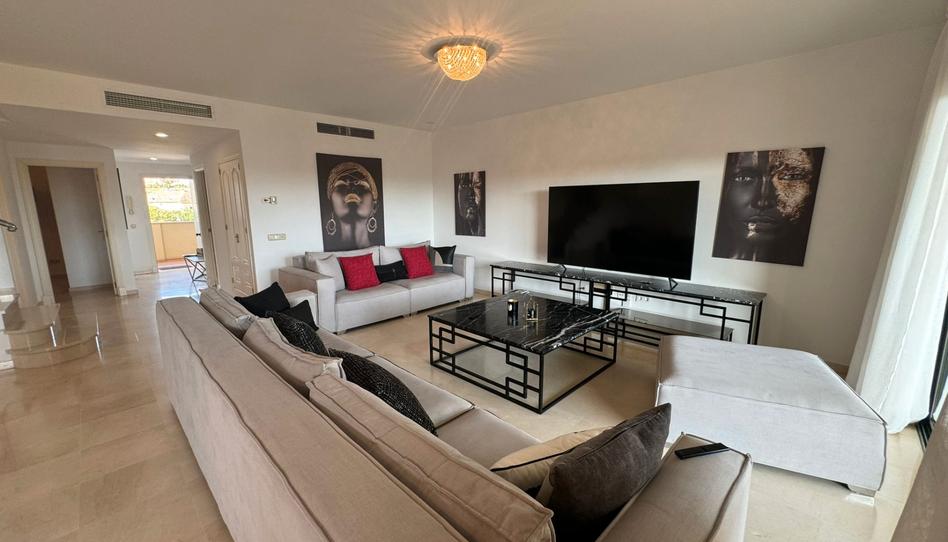 Alquiler de larga temporada de fantástico ático dúplex en la prestigiosa urbanización de Guadalcantara Golf. La vivienda se distribuye en: