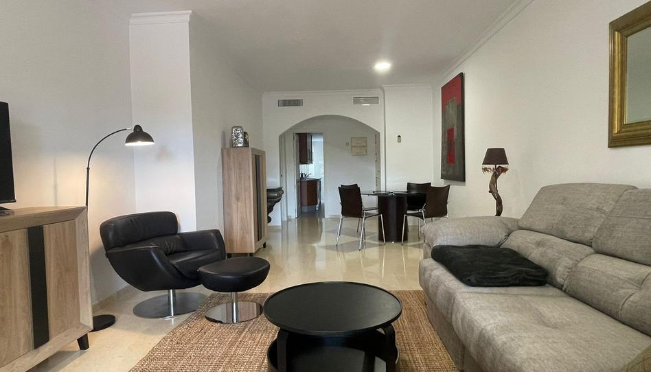 La vivienda ofrece un salón luminoso con grandes ventanales que se abren a una amplia terraza, perfecta para disfrutar de comidas al aire libre o relajarse bajo el sol andaluz. La cocina moderna totalmente equipada es funcional y elegante, y ambos dormitorios cuentan con armarios empotrados; el dormitorio principal dispone de baño en suite.