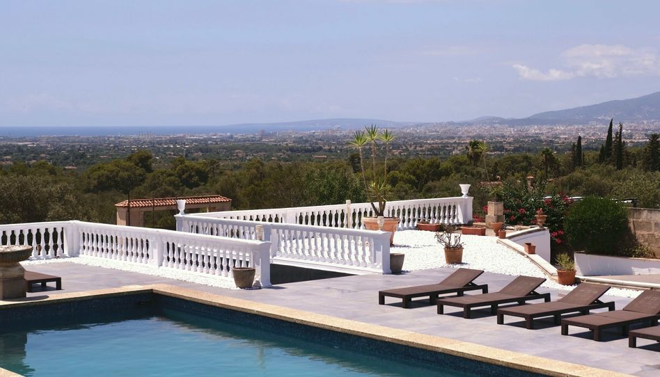 Disfrute de impresionantes vistas panorámicas al mar, a la ciudad de Palma y a las montañas circundantes desde esta excepcional villa.