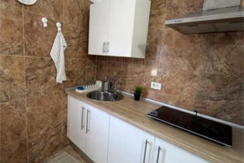 Se alquila pequeño estudio amoblado y listo para entrar a vivir. Tiene su baño y cocina. Vitroceramica de inducción de 2 fuegos nueva, nevera con congelador nueva, colchón nuevo a estrenar. Es para una persona sola, la cama es de 90 x 190. Se encuentra en una primera planta.