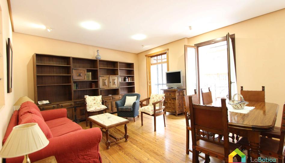 SALÓN amplio con mirador y dos balcones a la calle Comercio, con zona destinada como salón, donde se sitúa el sofá con la televisión, y zona destinada a comedor, con la mesa con sillas, ideal para reuniones familiares y/o con amigos. Cuenta con balcones, ideal como desahogo de la vivienda. Y con AIRE ACONDICIONADO.