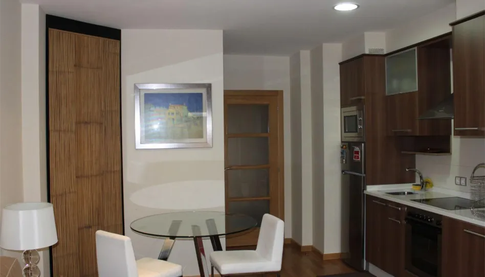 La vivienda se distribuye en: 1 habitación, 1 baño completo, salón con cocina integrada incluye un sofá cama, amplia terraza de 20m2 , ideal para disfrutar al aire libre, trastero incluido. Muy luminoso y bien orientado, la habitación tiene visitas a una zona ajardinada del recinto ferial.