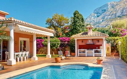 ALQUILER TEMPORAL. Disponible hasta el 31 de mayo 2026. El precio incluye gastos de mantenimiento de piscina y jardín, wifi y parking. Excluye consumos de electricidad, gas y agua. Con capacidad para 10 personas, esta impresionante villa ofrece comodidad y una ubicación tranquila a 2 km de la playa de arena, garantizando una estancia inolvidable. Comodidades que Marcan la Diferencia Equipada con todo lo necesario para unas vacaciones ideales, la villa incluye: Aire acondicionado en todas las estancias y calefacción central. WiFi gratuito. Amplio jardín con tumbonas y mobiliario exterior, perfecto para relajarte bajo el sol. Zona de barbacoa, ideal para cenas al aire libre con familiares o amigos. Aseo y ducha exterior para mayor comodidad. Espacios Amplios y Funcionales La villa está distribuida en dos plantas, ofreciendo comodidad y privacidad para todos sus huéspedes: Planta Inferior: 3 habitaciones dobles. 1 baño completo con ducha. Salón comedor espacioso con mesa para 10 personas y TV. Cocina completamente equipada, con dos neveras, lavavajillas y otros, ideal para preparar y disfrutar de la mejor gastronomía. Planta Superior: 2 habitaciones dobles. 1 baño completo con bañera. Terraza con vistas abiertas, perfecta para relajarte y disfrutar del paisaje. Ubicación Ideal La Villa Cuatro Soles se encuentra en una zona tranquila, cerca de la playa de Denia y de todos los servicios esenciales, como supermercados y restaurantes. Su ubicación estratégica te permite disfrutar de la tranquilidad sin renunciar a la comodidad de tener todo cerca.