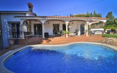 villa en alquiler larga temporada en xona Puerto Marina plaza Solymar, 6 dormitorios, 4 baños, amplio salón, cocina independiente con pasaplatos y lavadero, porche, piscina privada, jardín, garaje. Aire acondicionado, amueblado, multitud de armarios, suelo radiante