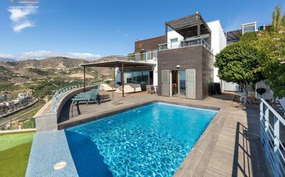 ESPECTACULAR VILLA EN ALMUÑECAR PARA ALQUILARLA EL AÑO COMPLETO. Te presentamos una espectacular villa en Almuñécar, más concretamente en el Barranco Cabria. Con una privilegiadas vistas al mar Mediterráneo de las que podrás disfrutar alquilándola por una año. Además, podrás ir a la playa andando. La propiedad de diseño moderno y abierto que fue construida en 2008, se encuentra ubicada en una urbanización exclusiva y privada. Se encuentra distribuida de la siguiente forma: Nos da la bienvenida una amplia entrada que da paso a un amplio salón con suelos de madera. En esa planta encontramos también la cocina, de color rojo y con electrodomésticos de alta calidad, desde esta estancia se puede acceder a la fantástica terraza con piscina. Si subimos a la segunda planta, encontrados 4 dormitorios, con suelos de madera, armarios y salida a otra de las terrazas que ofrece la villa, también se encuentran los 5 baños de la vivienda, completos y de excelentes calidades. El exterior de la villa es la joya, con piscina y jardín con mini-golf, podrás disfrutar del sol y de las impresionantes vistas. Además de todo esto, la vivienda cuenta con aparcamiento privado con capacidad para hasta 3 vehículos. En cuanto a las calidades de la vivienda, cuentas por ejemplo, con aire acondicionado caliente y frío, 2 ascensores y Wi-Fi de alta velocidad. En cuanto a la zona, puedes disfrutar de los restaurantes de Playa de Cabria, el municipio de Almuñécar que ofrece todos los servicios que puedas necesitar, y además te encuentras a 1 hora, tanto de Granada como de Málaga. No dejes pasar esta oportunidad de alquilar una propiedad con encanto y personalidad en un entorno privilegiado. Contacta y ven a verla con Kabuki. ***Está orientado a personas que puedan demostrar solvencia económica y por un periodo mínimo de un año.