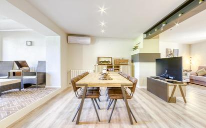 Casa llena de calidez y de exquisito gusto decorativo. Amplio salón-comedor con chimenea, cocina abierta. Moderna y totalmente equipada. Sala abierta con suelo de piedra es el lugar ideal para relajarse y como punto de salida amplio jardín con vistas fantásticas a la montaña. La planta baja está equipada con parqué y un equipo de aire acondicionado, amplio armario empotrado, armario de telecomunicaciones, habitación-lavandería y un amplio baño con plato de ducha. En la segunda planta encontramos una habitación suite (17,50 m²), con plato de ducha y amplio armario empotrado, con salida en la terraza, una habitación doble (10,70 m²), una tercera habitación de (15,50 m²) con un generoso vestidor, equipo de aire acondicionado, y salida a la terraza. En el distribuidor de la planta hay otro equipo de aire acondicionado. Suelo de parqué, puntos de TV, conexiones a internet en todas las estancias y una alarma silenciosa de última generación, con sensores en todas las ventanas. Reformada totalmente en 2018, dispone de una sala de caldera, depósito de gasóleo, y placas solares para hacerla todavía más eficiente, Una gran sala para almacenar la leña, el mobiliario de jardín y las bicicletas. Sin duda, es una casa con grandes acabados de calidad, encantadora y confortable. No te podrás resistir a vivir. Se alquila completamente equipada y amueblada.