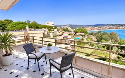 Esta es tu oportunidad de disfrutar de unas vistas paradisíacas en pleno corazón de la Costa Brava. Se trata de un apartamento con gran terraza a dos vientos con vistas al mar y a la bahía de S'Agaró. En un complejo residencial muy bien posicionado, con piscina, vistas al mar y servicio de conserjería durante todo el año, se encuentra este coqueto apartamento, perfecto para quienes buscan despertarse en un pequeño paraíso. Su maravillosa terraza te permite disfrutar de desayunos, aperitivos y cenas en un entorno totalmente privilegiado. Con una superficie de 49 m² interiores útiles y una impresionante terraza de 30 m² en forma de L, a dos vientos, este hogar está diseñado para disfrutar al máximo del entorno, sus playas y los rincones más encantadores de la Costa Brava. Su distribución muy funcional incluye un luminoso salón-comedor a dos vientos, con cocina integrada, que se abre directamente a la terraza, creando un espacio ideal para relajarse o compartir momentos especiales mientras contemplas la bahía de Sant Pol. Las vistas son privilegiadas por ser totalmente despejadas y en una planta alta. El dormitorio principal, situado al final de un acogedor pasillo, garantiza privacidad y confort, con un baño completo renovado. La vivienda se encuentra en buen estado, lista para entrar a vivir. Además, dispone de calefacción individual por gas natural y aire acondicionado con bomba de frío/calor, asegurando el máximo confort durante todo el año. Plaza de parking privada incluida en el precio. Ubicación privilegiada: Situado en una de las zonas más exclusivas de S'Agaró, el complejo está rodeado de naturaleza y pequeñas calas de aguas cristalinas. A solo unos pasos, el famoso Camino de Ronda te llevará hasta la idílica playa de Sant Pol y al animado centro de S'Agaró, donde encontrarás una variada oferta de restaurantes, bares y comercios. Imagina despertarte cada día con el sonido del mar y disfrutar de unas vistas panorámicas espectaculares desde la comodidad de tu hogar. Si buscas un hogar con encanto, vistas inigualables y una ubicación excepcional, ¡este es tu lugar! ¡Contáctanos para más información y ven a descubrirlo en persona! #ref:VN720