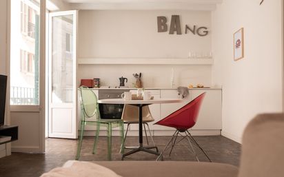 Ubicado en el centro histórico de Palma, este encantador apartamento disfruta de una ubicación céntrica y a la vez tranquila, a pocos pasos de la prestigiosa zona comercial de Jaime III y del Paseo del Borne, conocido por sus elegantes boutiques, cafeterías y restaurantes. El Mercado del Olivar, la Plaza Mayor y la Plaza España se encuentran a pocos minutos a pie. El apartamento cuenta actualmente con un amplio recibidor que da paso a un luminoso espacio abierto de salón, comedor y cocina con acceso directo a dos balcones. La propiedad dispone de dos dormitorios, uno de ellos con vestidor y posibilidad de convertirse en un baño en suite, además de un baño completo. La vivienda forma parte de un pequeño edificio rehabilitado que data de 1878, situado en una tranquila calle peatonal que ofrece un ambiente agradable y silencioso en pleno centro de la ciudad. El edificio no dispone de ascensor. Entre sus características destacan los techos altos, los suelos de madera de roble y el hecho de que la vivienda se vende amueblada tal y como se presenta. Además, la propiedad incluye un trastero privado de aproximadamente 4 m² situado en la planta superior, con uso compartido del espacio comunitario.
