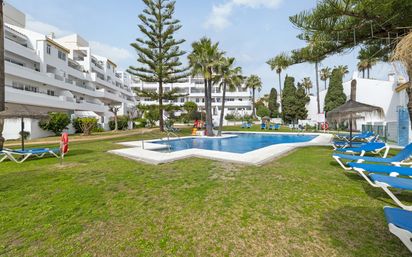 Este apartamento, cuidadosamente presentado, se encuentra en la codiciada zona de Marina del Sol en Mijas Costa, Málaga, dentro del reconocido Wyndham Resort, anteriormente conocido como Club La Costa. La propiedad goza de una ubicación privilegiada a las afueras de Fuengirola, ofreciendo fácil acceso a la playa, comercios locales, restaurantes acogedores y un centro médico, todo a poca distancia a pie. Ubicado en una comunidad cerrada, los residentes disfrutan de hermosos jardines comunitarios, varias zonas de piscina, gimnasio, pista de tenis y un aparcamiento subterráneo seguro con acceso en ascensor directamente a la planta del apartamento. El apartamento consta de dos dormitorios dobles, ambos con armarios empotrados y que comparten un moderno baño familiar equipado con ducha a ras de suelo. La zona de estar incluye un amplio salón con comedor independiente, que da acceso directo a una terraza privada de aproximadamente 18 m². Esta terraza ofrece agradables vistas a los jardines y la piscina, así como destellos del mar, lo que la convierte en un lugar ideal para relajarse o recibir invitados. El interior de la propiedad abarca 63,17 m², con una superficie construida, excluyendo la terraza, de aproximadamente 74 m², garantizando espacios habitables cómodos y prácticos en todo momento. La cocina independiente, totalmente equipada, dispone de electrodomésticos modernos y amplio espacio de almacenamiento, satisfaciendo todas las necesidades culinarias. Entre las características adicionales se incluyen internet (Wi-Fi) y un trastero, lo que aumenta la comodidad y conveniencia. El apartamento se vende completamente amueblado y se presenta en buen estado, listo para entrar a vivir de inmediato. Se incluye una plaza de aparcamiento privada y un trastero en el garaje subterráneo, proporcionando soluciones seguras y prácticas para los residentes. Este apartamento representa una excelente oportunidad para adquirir una vivienda elegante y bien equipada en una vibrante ubicación costera. Con su variedad de servicios en el lugar, proximidad al mar y excelentes conexiones de transporte, esta propiedad es ideal para quienes buscan una segunda residencia, inversión o vivienda permanente en la Costa del Sol.