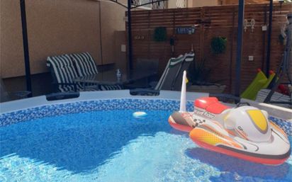 Chalet adosado en Residencial San Francisco, 5 dormitorios, 2 baños, aire acondicionado y calefacción por conductos, placas solares, barbacoa de obra en terraza , césped en jardín y terraza, etc ....