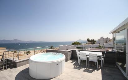 Este dúplex en primera línea de 65m2, dispone de 2 dormitorios y 1 baño completo, con una cocina totalmente equipada que se complementa con un salón-comedor. Lo más destacado de esta propiedad es la terraza con jacuzzi y sus magníficas vistas abiertas al Puerto de Pollença y a la montaña, crean el escenario ideal para pasar agradables veladas en familia o con amigos. Con una licencia de alquiler vacacional en vigor, esta propiedad ofrece una oportunidad deseable, tanto para inversores como para propietarios, de vivir a sólo unos minutos de las playas de Puerto de Pollença, donde se puede disfrutar de pintorescas calles estrechas y una gran selección de restaurantes y cafés. Además de estar rodeado de historia y belleza, esta perfecta ubicación también garantiza el acceso a todas las comodidades y servicios esenciales.