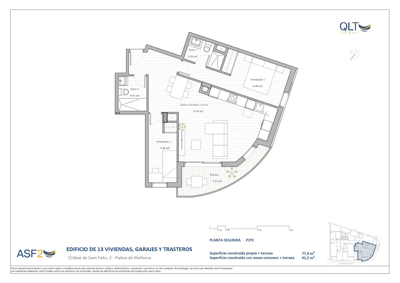 La promoción contará con 13 viviendas de 2 y 3 dormitorios, todas ellas con terraza privada, y plaza de garaje incluida en el precio, teniendo adicionalmente la mayoría de ellas un trastero. Además, los futuros residentes disfrutarán de una maravillosa terraza-solárium comunitario en la azotea.