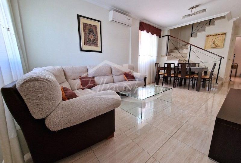 Adosado de esquina en Fañabé, consta de 3 plantas, con un total de 112 m2, de los cuales 94 m2 habitables. La planta principal consta de salón comedor muy luminoso con aire acondicionado, un aseo, cocina independiente amueblada con acceso directo al complejo.