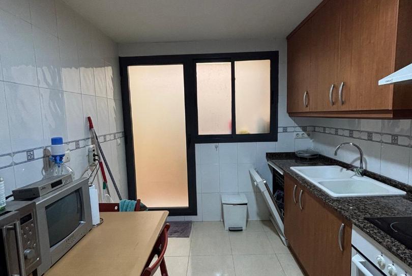 La cocina es independiente y cuenta con terraza interior, muy práctica como zona de lavado o almacenamiento.