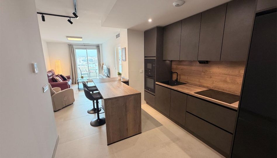 La vivienda presenta una distribución abierta y funcional. La zona de día integra salón y cocina en un único espacio amplio y luminoso. Las puertas correderas del salón dan acceso a una terraza con vistas panorámicas a la ciudad de Almería, aportando gran luminosidad a toda la estancia y convirtiéndose en el lugar ideal para disfrutar del clima durante todo el año.