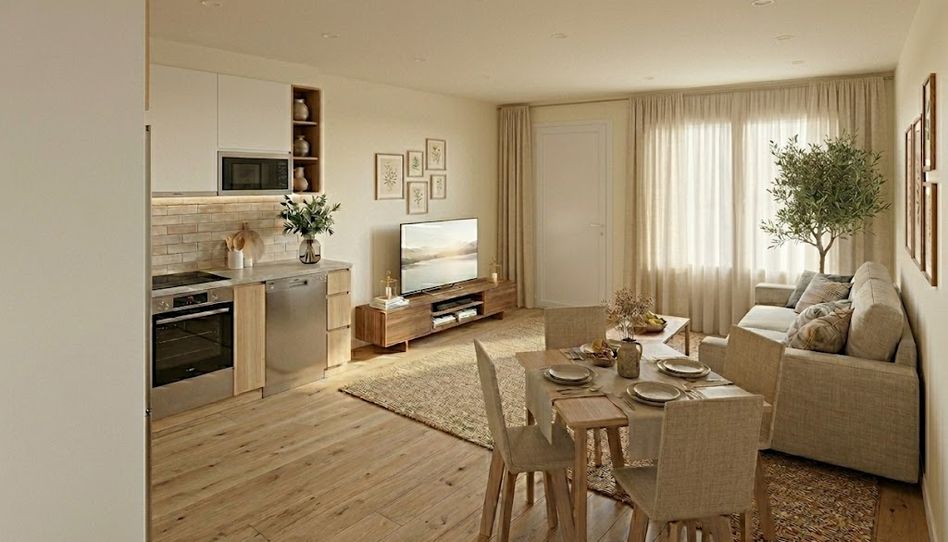 Dispone de un amplio salón-comedor con cocina integrada en un espacio abierto y acogedor, un dormitorio doble, un baño completo y una segunda habitación que se puede destinar también a estudio o despacho, ideal para teletrabajo, zona polivalente o vestidor.