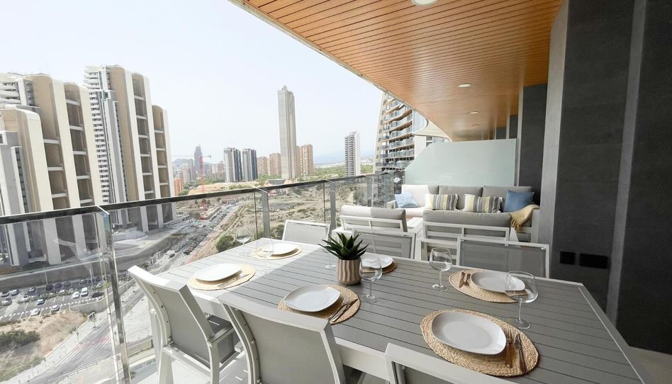 Descubre esta espectacular vivienda ubicada en uno de los complejos más exclusivos de Benidorm: Sunset Waves, donde el diseño vanguardista y la calidad de vida se dan la mano. Con una superficie construida de 168 m2 y útil de 124 m2, este piso cuenta con tres amplios dormitorios y dos baños completos, ideal para familias que buscan comodidad sin sacrificar estilo. La propiedad incluye plaza de aparcamiento y ofrece espacios abiertos inundados por luz natural gracias a su orientación sur; además destaca su terraza privada desde donde podrás disfrutar impresionantes vistas panorámicas al mar Mediterráneo.