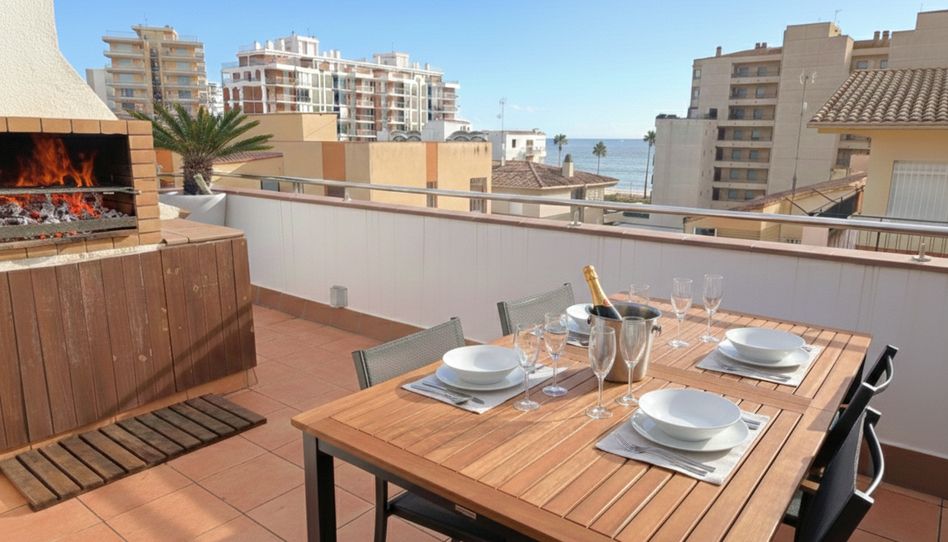 Planta Superior: Espaciosa sala polivalente ideal para un tercer dormitorio o despacho. Exterior: Destaca la impresionante terraza con vistas al mar, muy soleada, amplia y equipada con barbacoa.